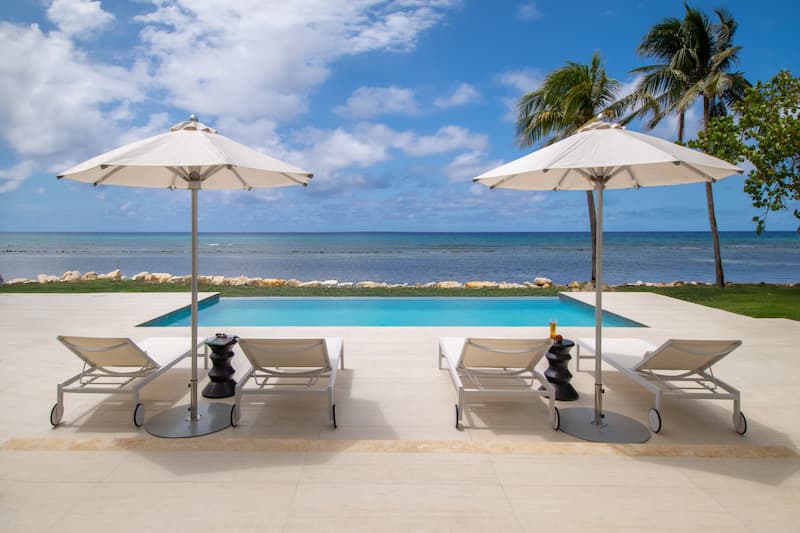 Each villa features both contemporary and tropical influences to create modern and unique interiors. The villas include enormous, white, marble bathrooms with lavish silver mirrors and color blocked bedrooms with exotic marine life wall art.